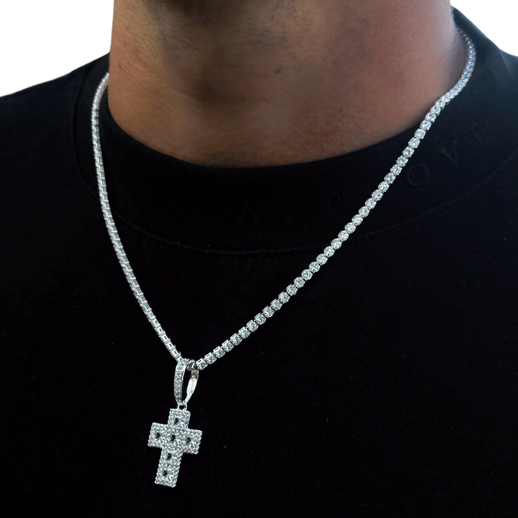 Este modelo é composto por uma riviera com banho á prata, e o pingente em prata 925 cravejado com pedras de zirconia.